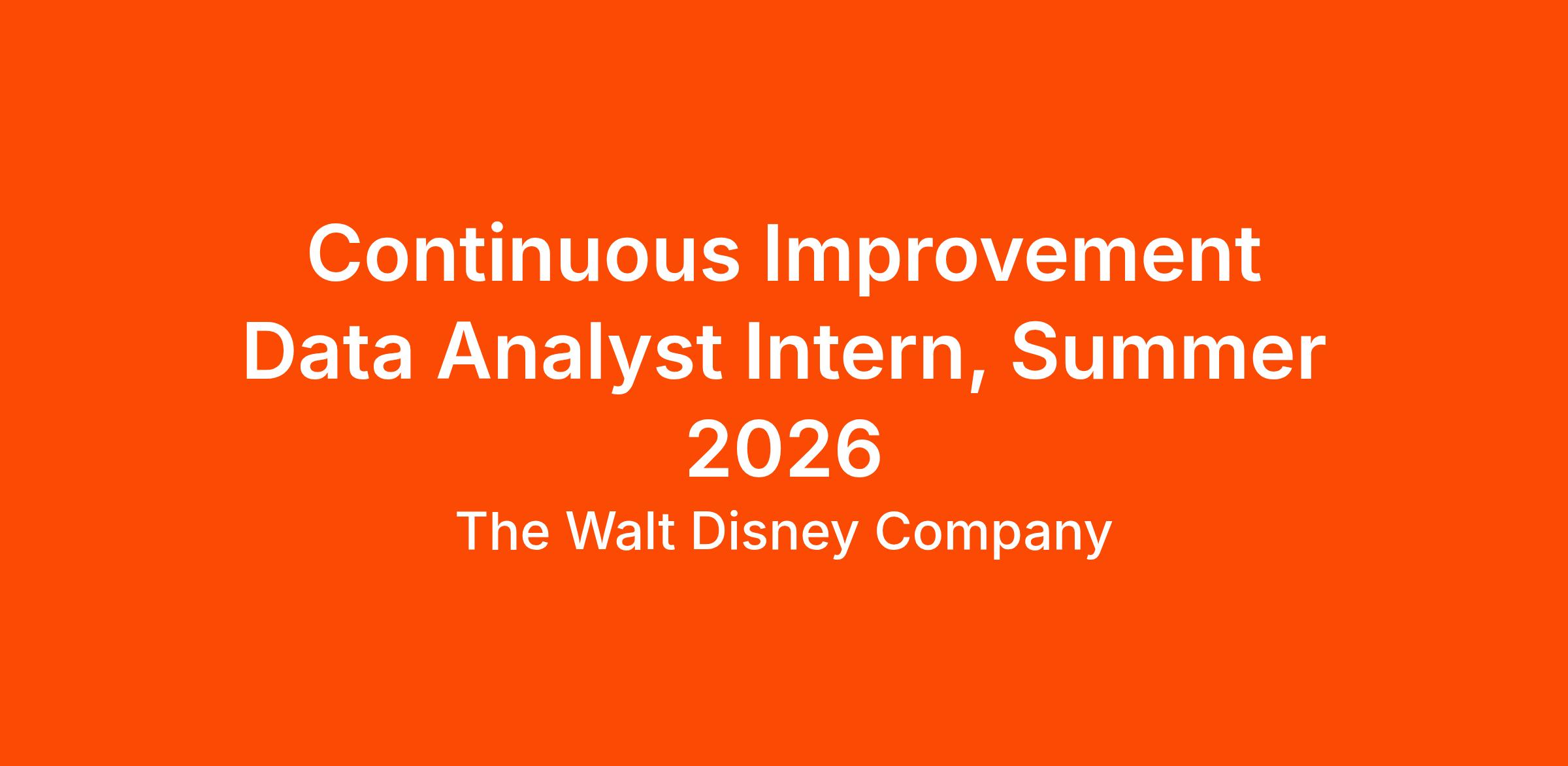 Continuous Improvement Data Analyst Intern, Summer 2026