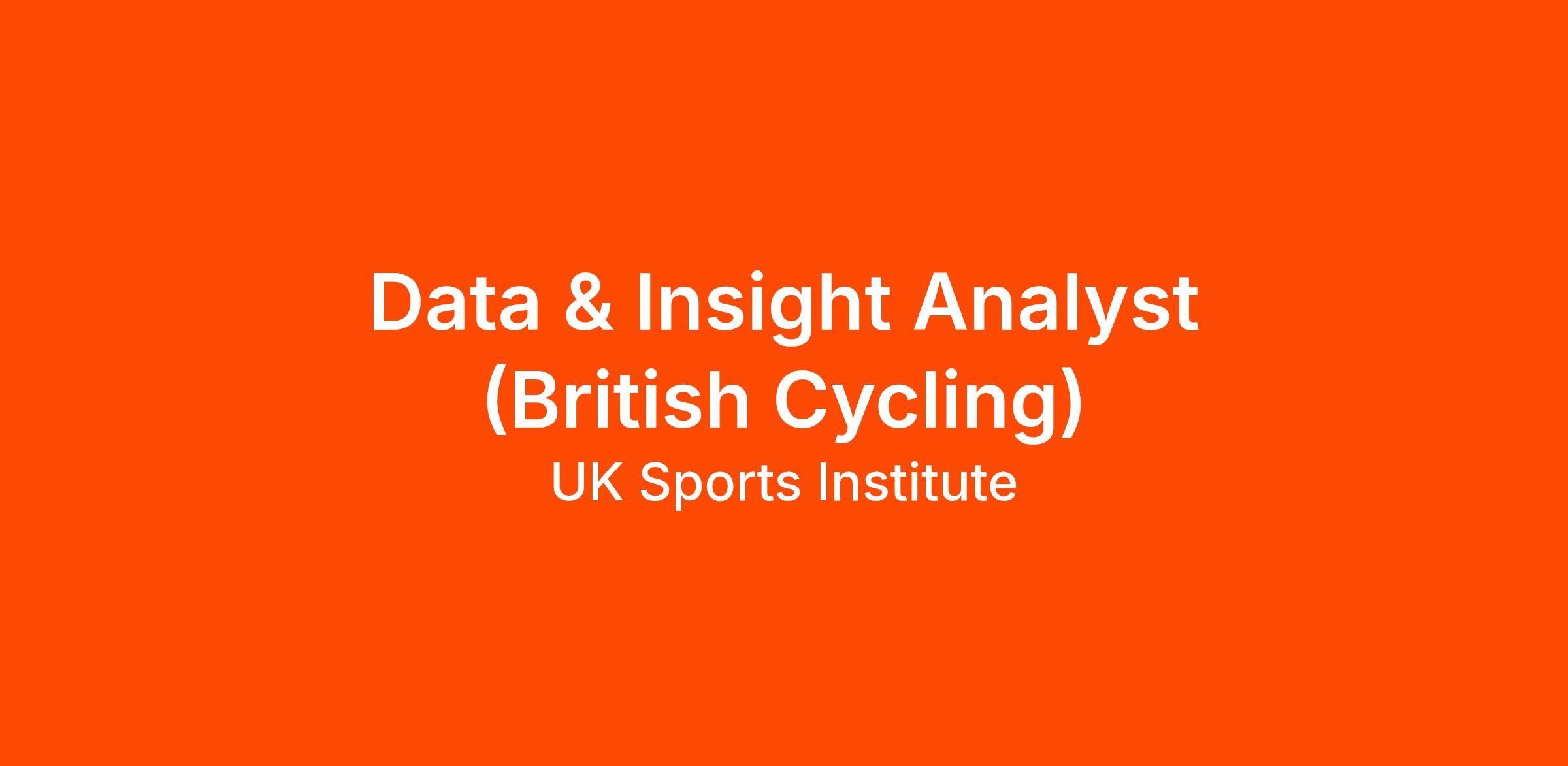 The UK Sports Institute and have an exciting opportunity for a Full time Data & Insights Analyst to work with the British Cycling Team in Manchester.