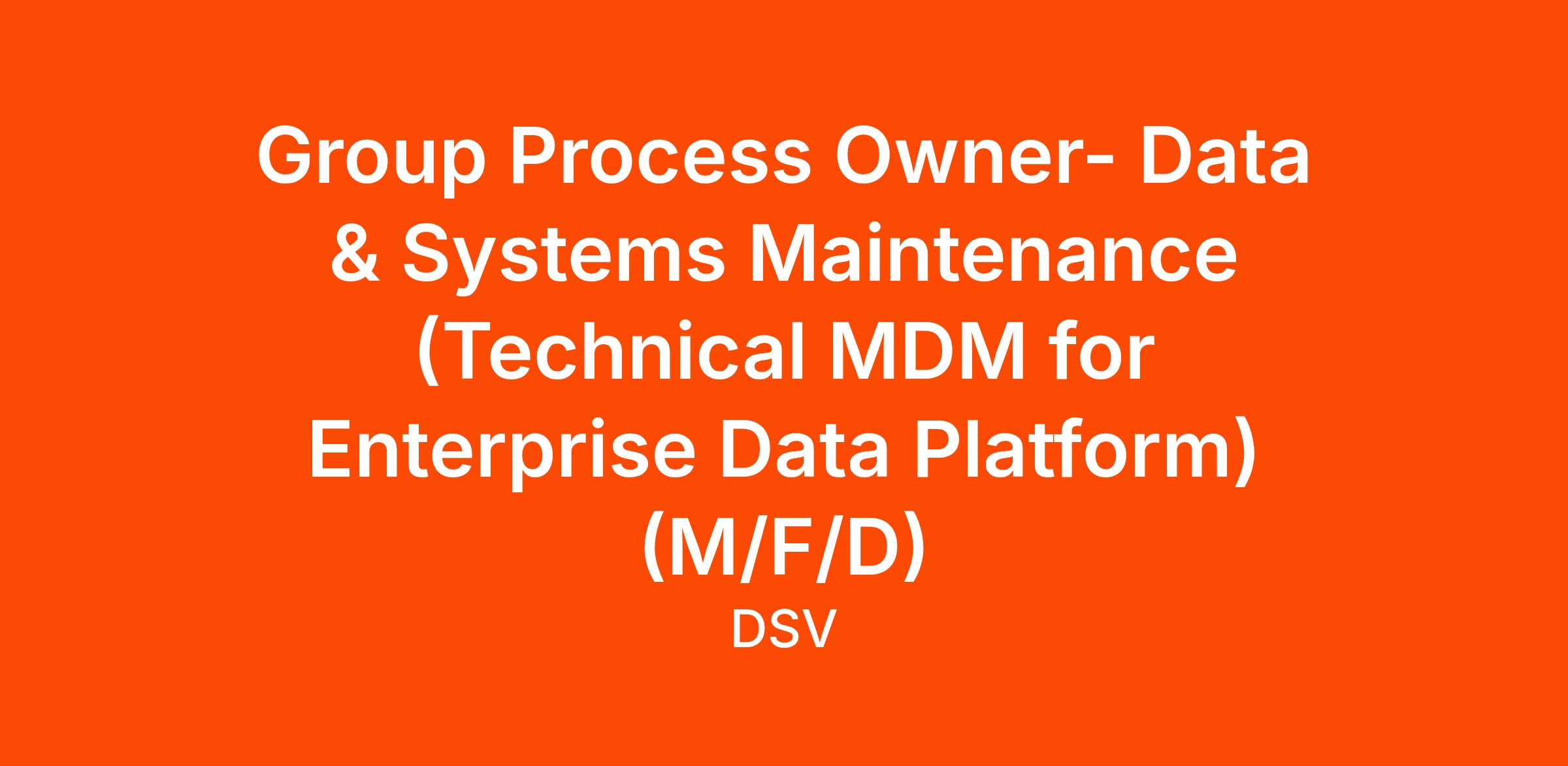 We are looking for a Group Process Owner (GPO) within the Data & Systems Maintenance (DSM) area, focusing on technical master data governance, system integration and alignment with the Enterprise Data Platform (EDP). The role ensures that all technical services, interfaces and data models fully adhere to MDM governance, support consistent enterprise-wide data flows and enable long‑term data quality.