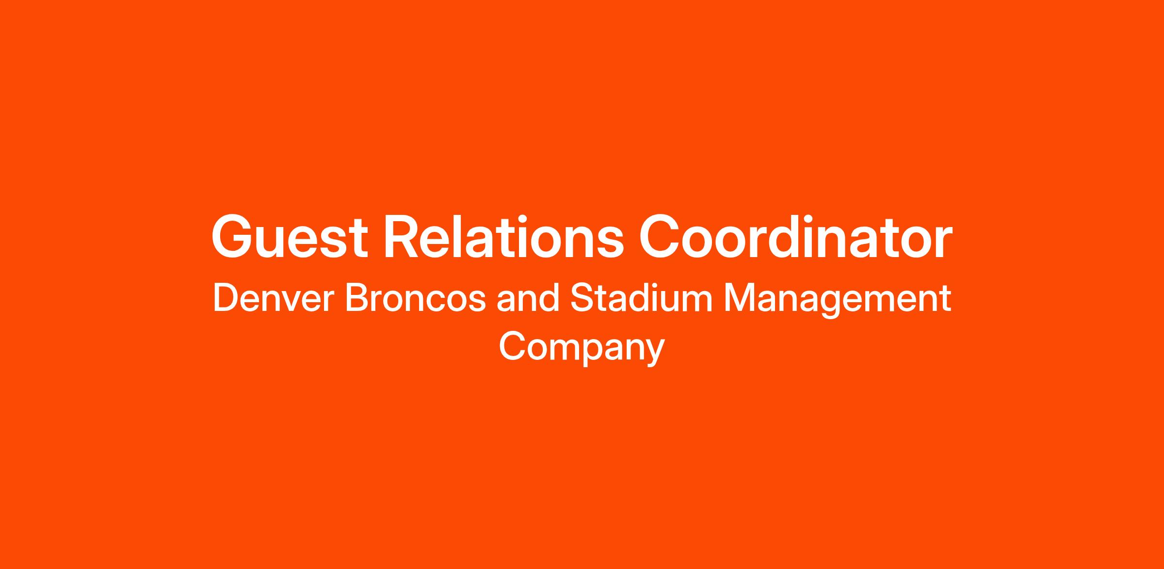 JOB SUMMARY: The Guest Relations Coordinator is responsible for providing excellent service to Guest Relations event staff and assisting with the administrative support and day-to-day operations of the Guest Relations department. This role is responsible for the onboarding of all new hire employees, staffing and reconciling Special Events, and assisting with the planning, execution, and reconciliation of public events held at Empower Field at Mile High.