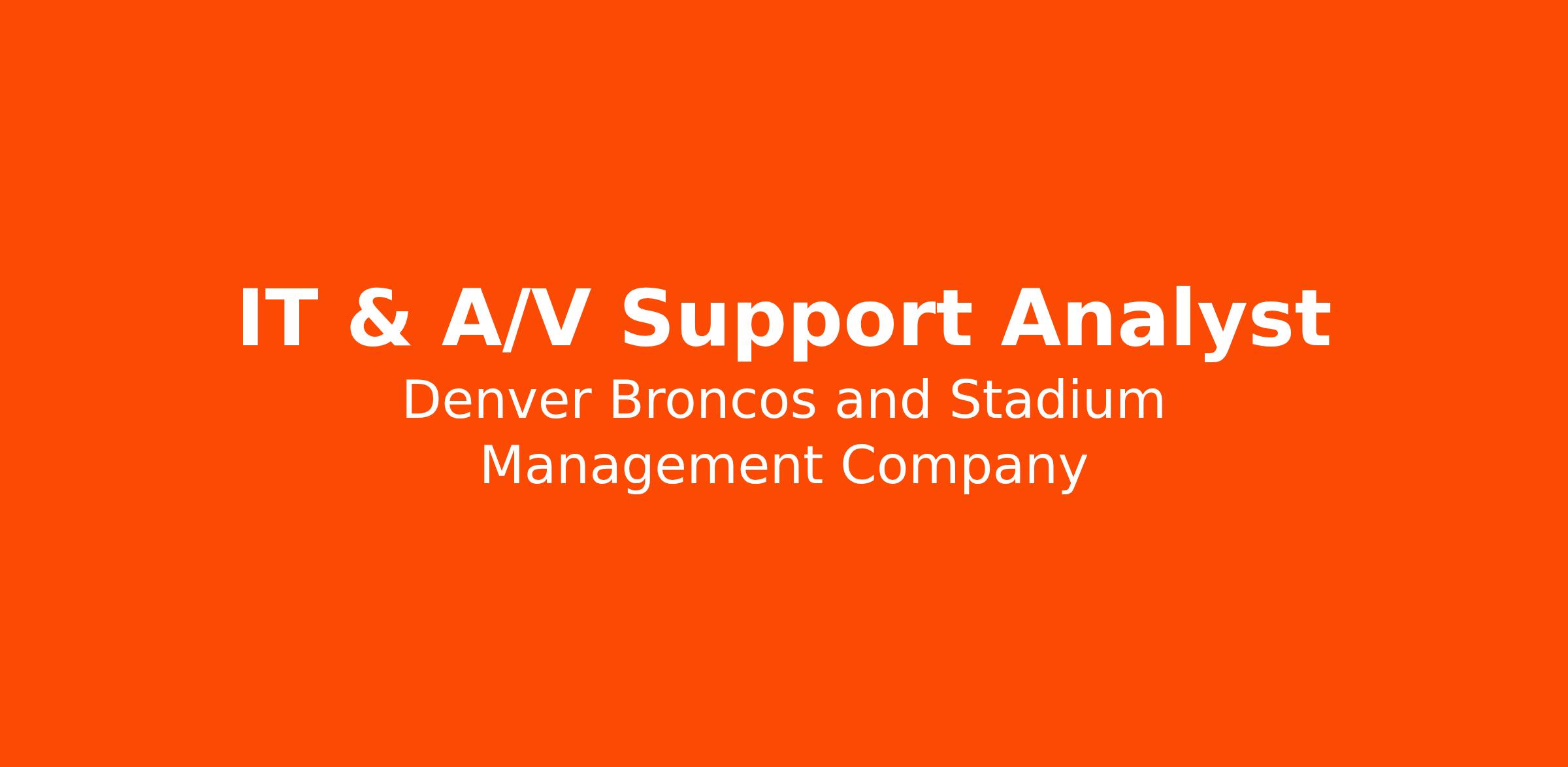 To achieve success, this role involves partnering closely with Football Operations and the Training Center Experience team to ensure reliable system performance through proactive troubleshooting, user guidance, and system optimization. While the main focus is A/V support, the Analyst will also provide essential IT support for Denver Broncos staff and systems integrated with these environments, maintaining a high degree of professionalism and superior customer service.