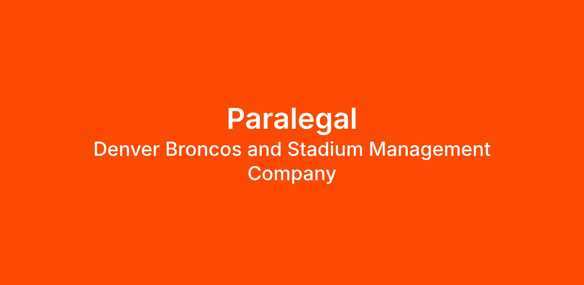 JOB SUMMARY: The Broncos legal department is looking for an experienced Paralegal to join the team. In this role, you will provide paralegal support across a broad range of legal functions, including corporate, commercial and litigation. Additionally, this role will assist in evaluating, implementing, overseeing and developing the legal department technology suite, including contract lifecycle management (CLM) software, and training business teams on legal technology tools. This position reports to the Deputy General Counsel.