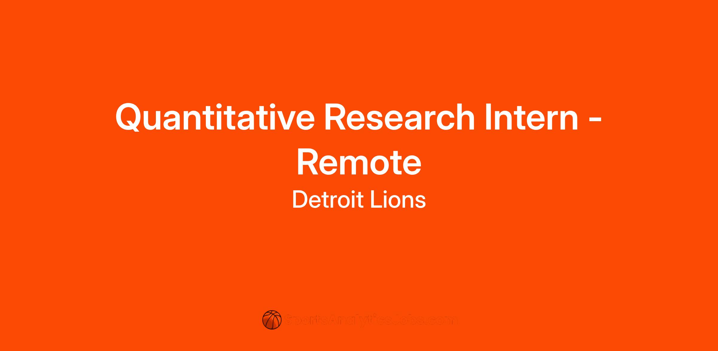 The Detroit Lions are seeking a motivated and independent intern to complete a football-based quantitative research project. This is a remote, part-time, paid internship structured as an educational and professional development opportunity. The internship will require approximately 15 hours of work per week for 10 weeks, and will include regular check-ins with the project lead and project milestones.
