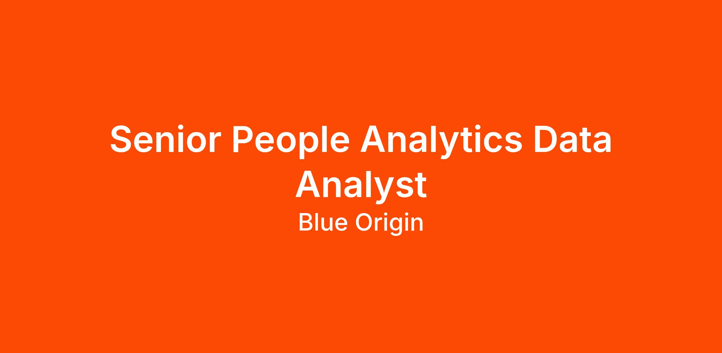 This role is part of Blue Origin corporate functions, providing centralized support across Blue Origin business unit teams, functions, and locations.We are seeking a highly skilled and detail-oriented Senior Data Analyst to join our Human Resources People Analytics team. In this strategic role, you will leverage your analytical expertise and problem-solving skills to transform raw data into actionable insights, enabling HR and business leaders to optimize processes, enhance performance, and drive organizational efficiency. Your work will be pivotal in shaping data-driven HR strategies and fostering organizational success. You will collaborate with cross-functional teams to design advanced data models and visualizations that contribute to our mission of operational excellence.