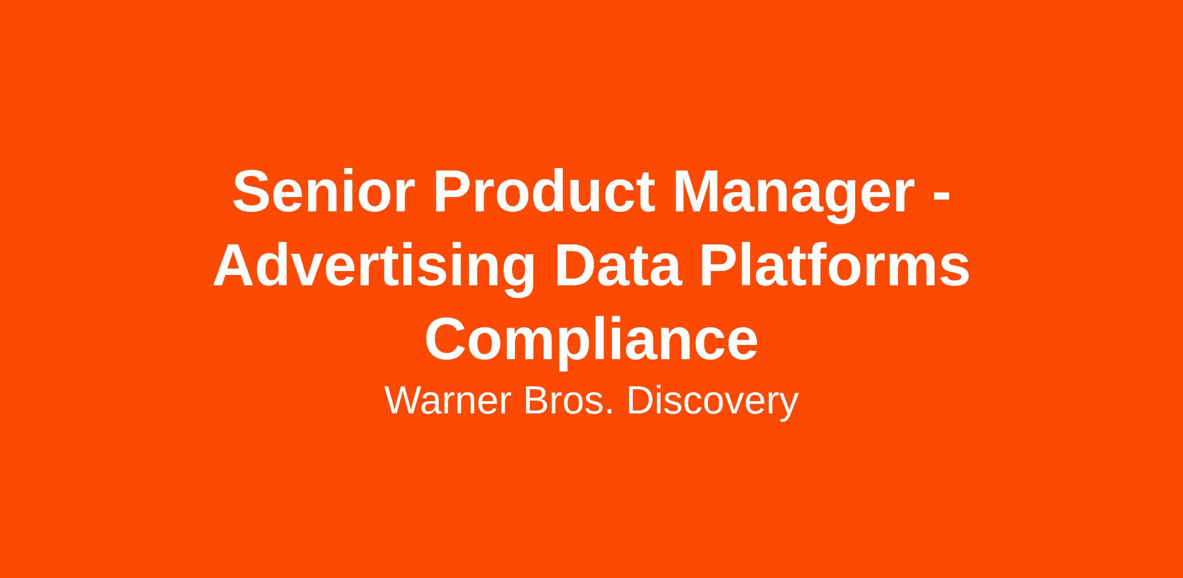 We are looking for a passionate and driven Senior Product Manager to join the DTC Data Product Compliance team. In this role, you will report to the Sr. Director of Privacy, Data Product Compliance. You will be working cross-functionally within the Product & Design organization across multiple product verticals: engineering, legal, data science, and analytics with a focus on privacy-preserving advertising platforms and technical frameworks. You will be defining scalable solutions that integrate across WBD’s DTC platforms supporting a wide range of advertising partners, internal stakeholders, and data use cases. You will be motivated to dive deep into the rapidly evolving tech landscape, rapidly changing regulatory environment, and legal nuances across multiple global regions where we operate.