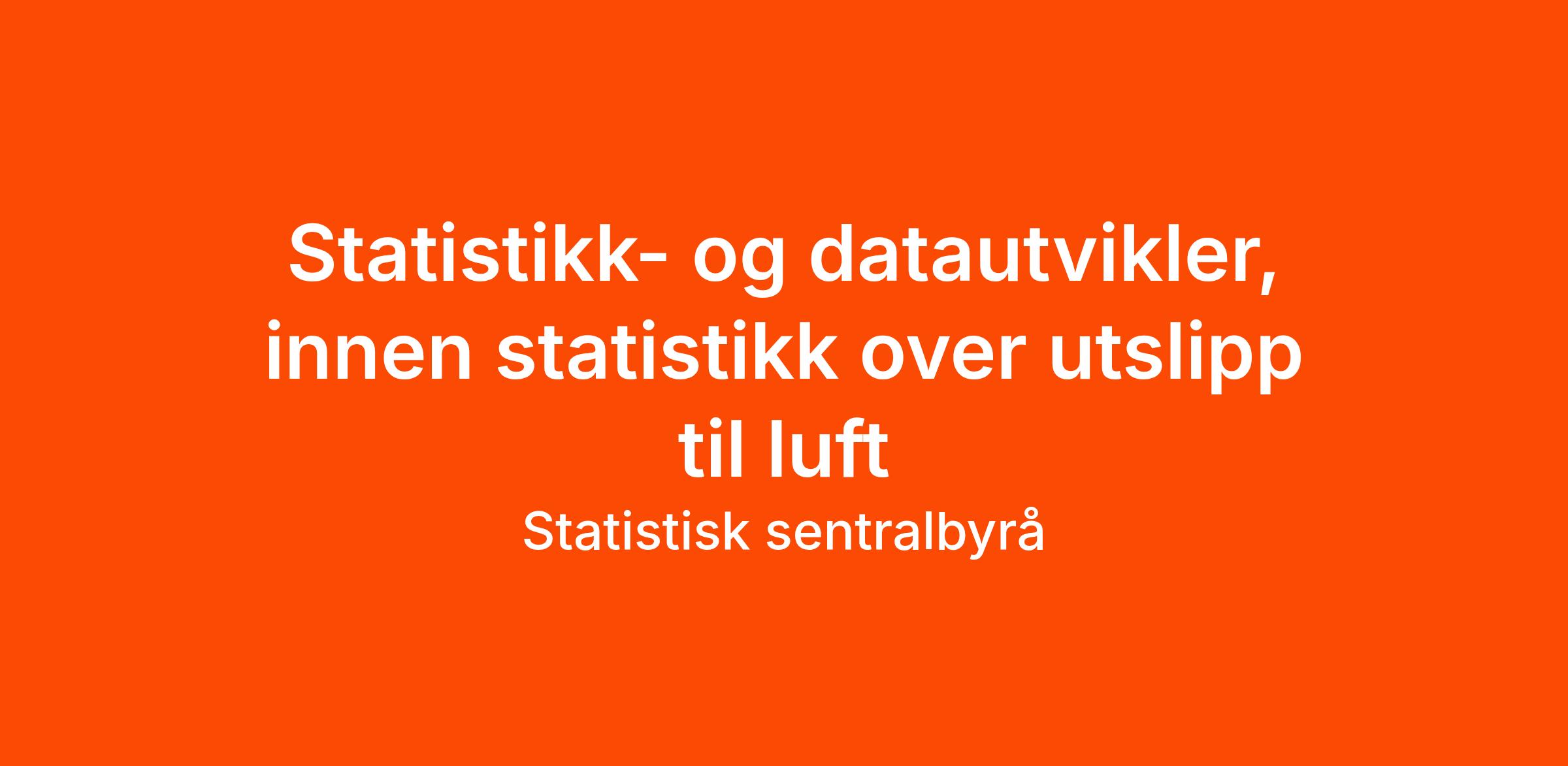 områder knyttet til energi, utslipp til luft, avfall og transport. Vi søker en ny medarbeider til produksjon og videreutvikling av statistikk på området utslipp til luft. Statistikken har stor betydning for myndighetenes oppfølging av nasjonale mål og internasjonale forpliktelser for områdene klima og luftforurensning. Stillingen kan innebære deltakelse og eventuelt prosjektledelse både nasjonalt og internasjonalt. Vi samarbeider blant annet med SSBs forskningsavdeling, Miljødirektoratet og andre aktører innen fagområdet. Det må påregnes tett kontakt med departementer, direktorater, ulike kompetansemiljøer og andre brukere av statistikkene. Statistisk sentralbyrå er i ferd med å flytte statistikkproduksjonen over på ny skybasert dataplattform, og stillingen omfatter både statistikkfaglige og IT-relaterte utviklingsoppgaver. Vi søker etter deg som har relevant fagbakgrunn og interesse for programmering. Det kan være en fordel om du har kompetanse innen Python og/eller R, og er fortrolig med delingstjenester som GitHub.