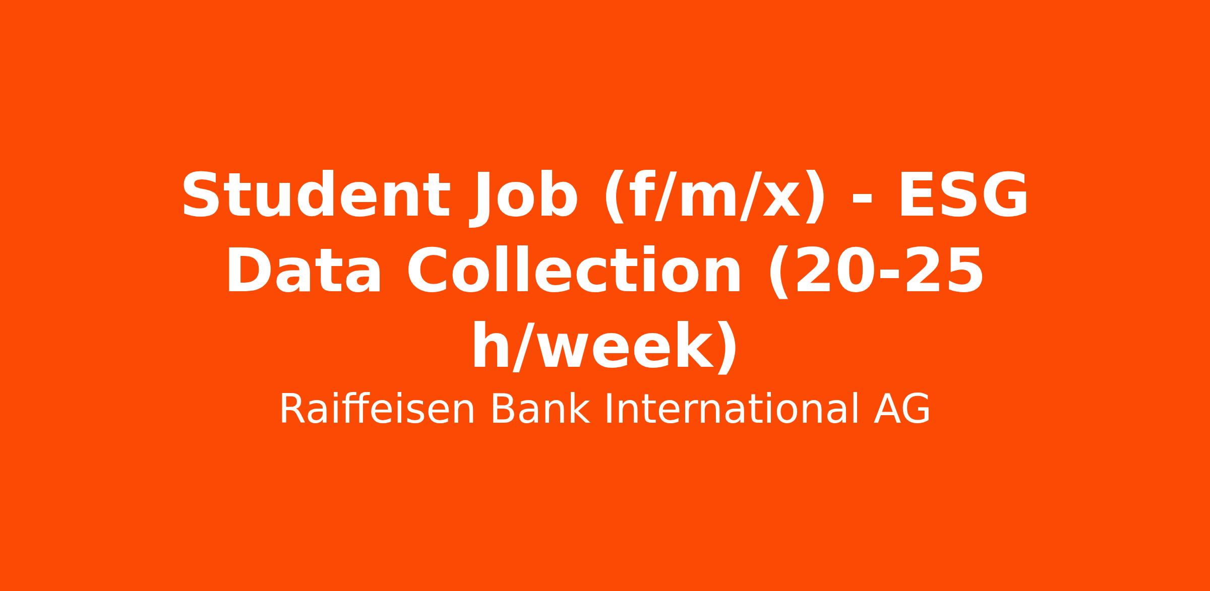 Are you passionate about ESG β and excited about customer data that drives real impact?β―In our team, you will be working at the heart of RBIβs green transformation, collaborating closely with ESG experts across the bank. RBI, a leading financial institution in Austria and CEE, is dedicated to integrating environmental, social, and governance (ESG) considerations into both our risk management and our service offering. We are seeking a part-time student to join our ESG Data Collection team. You will play a vital role in the collection and preparation of ESG data. Exploratory data analyses will complement your job role. In addition, our team has a special focus on solutions around the EU Taxonomy and physical risk data.