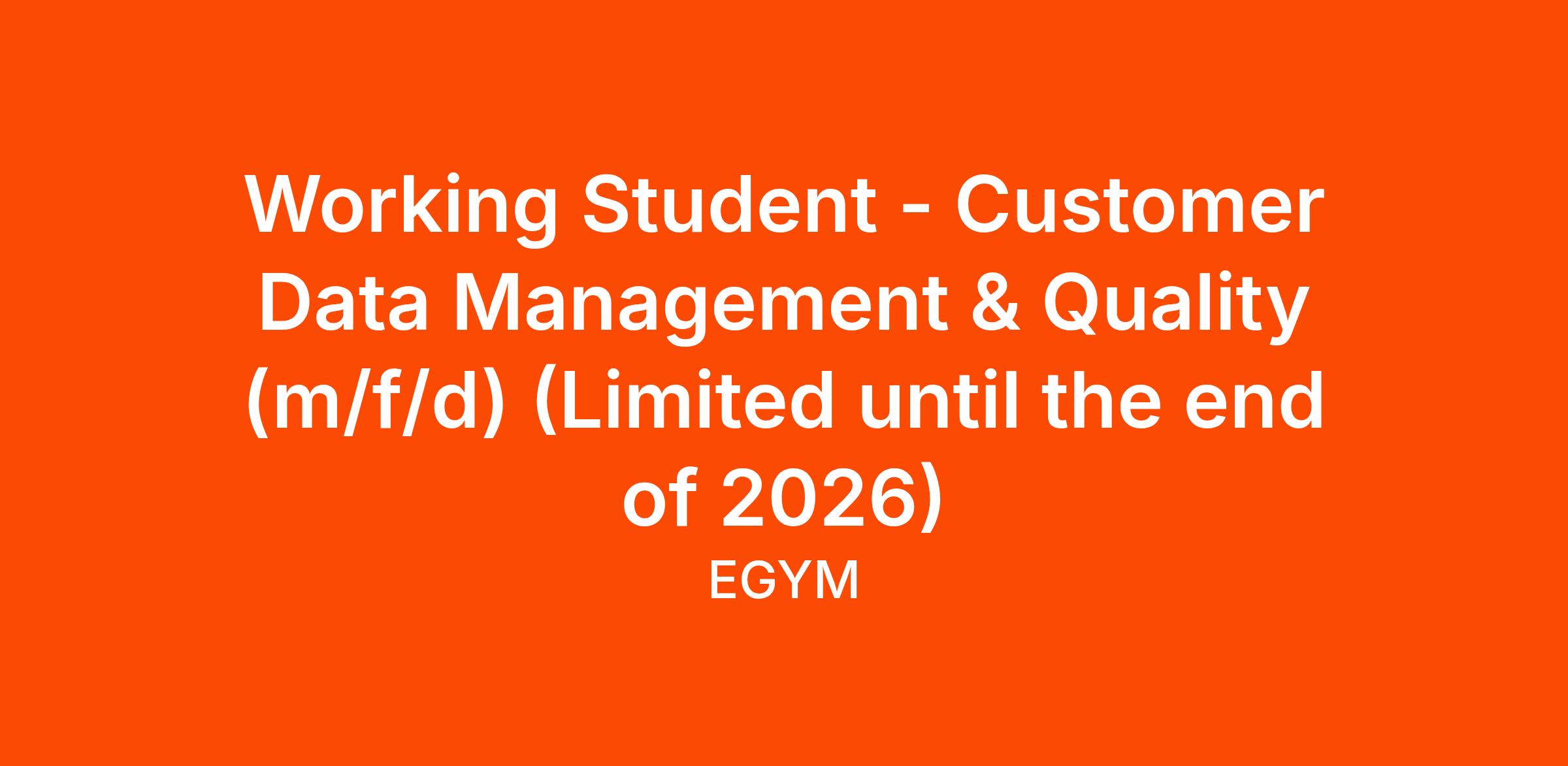 Working Student - Customer Data Management & Quality (m/f/d) (Limited until the end of 2026)